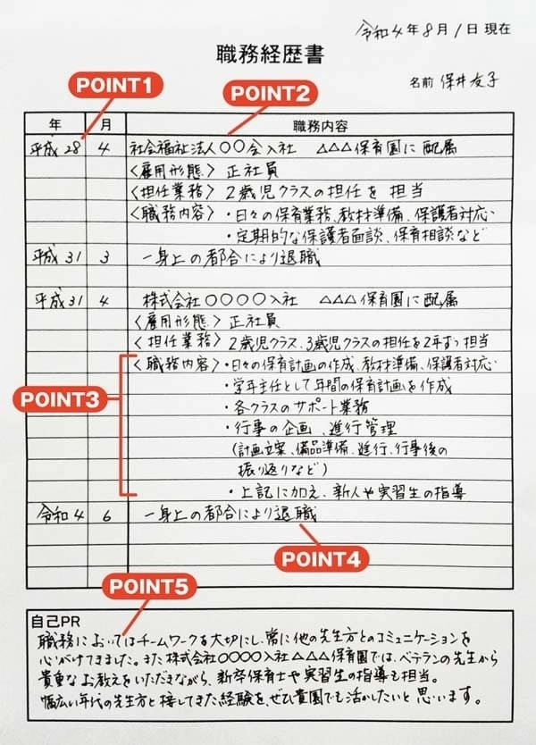 職務経歴書を「手書き」で作成する場合のポイントを解説!|特集情報|保育士転職・求人・派遣をお考えの方に【ほいとも】公式サイトの記事