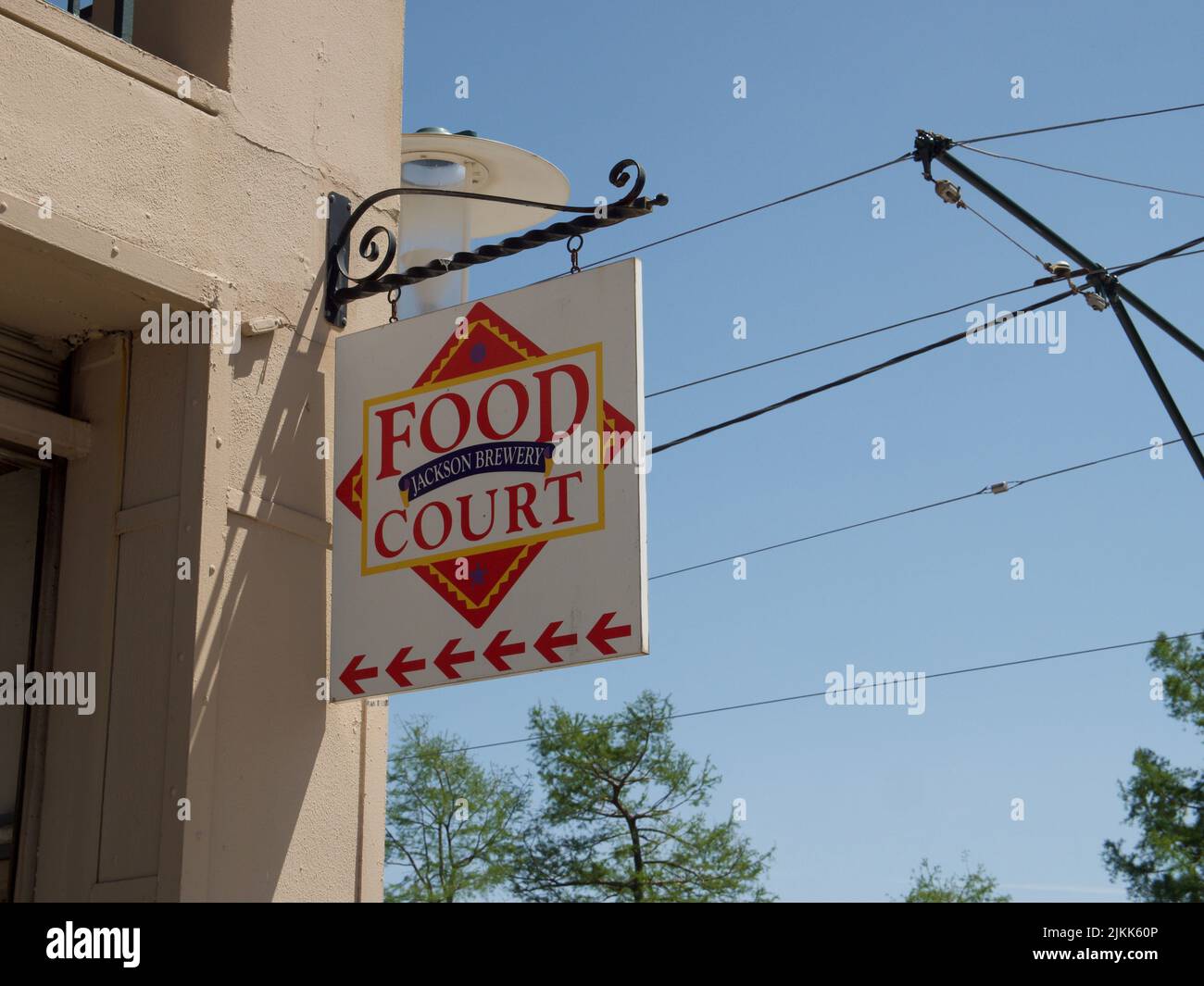 The white sign with text quot Food Court quot at Jackson Brewery in new Orleans