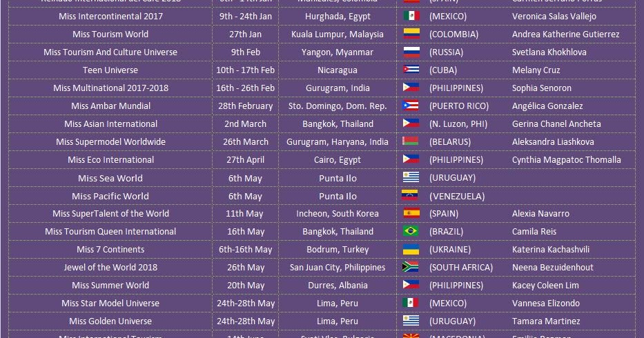 International Beauty Pageant Calendar for the year 2015 Angelopedia