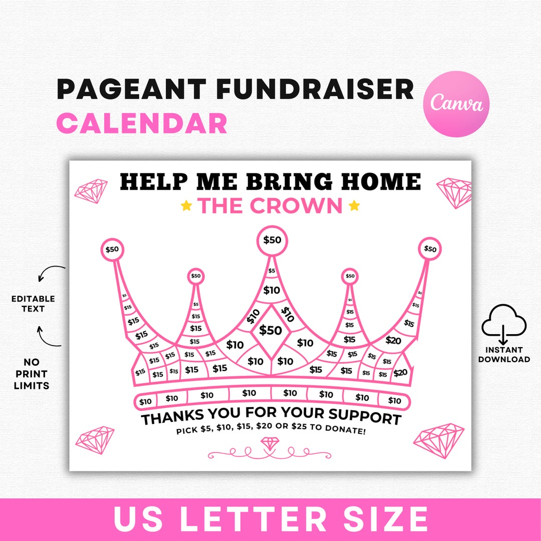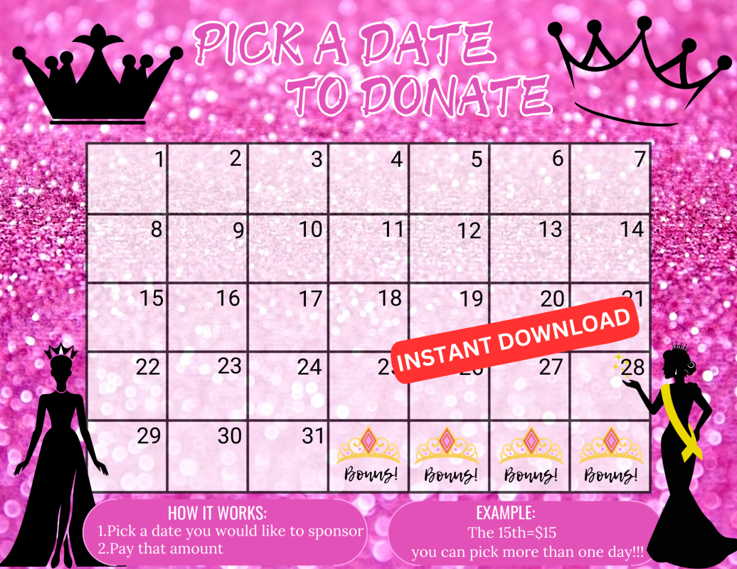 Pageant Pick a Date to Donate Calendar Fundraiser (INSTANT DOWNLOAD)
