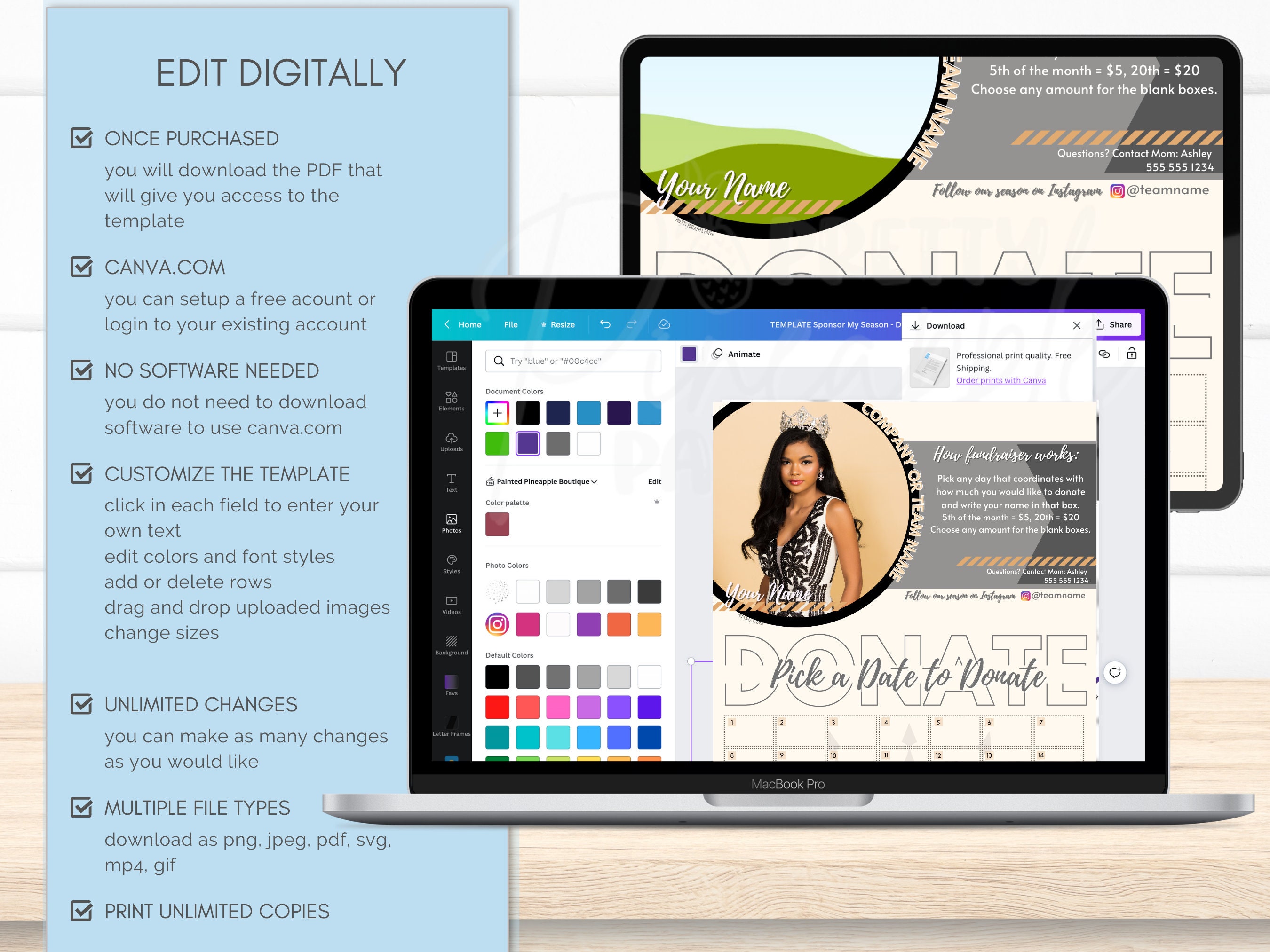 EDITABLE Pageant Template Personalized Pick a Date to Donate