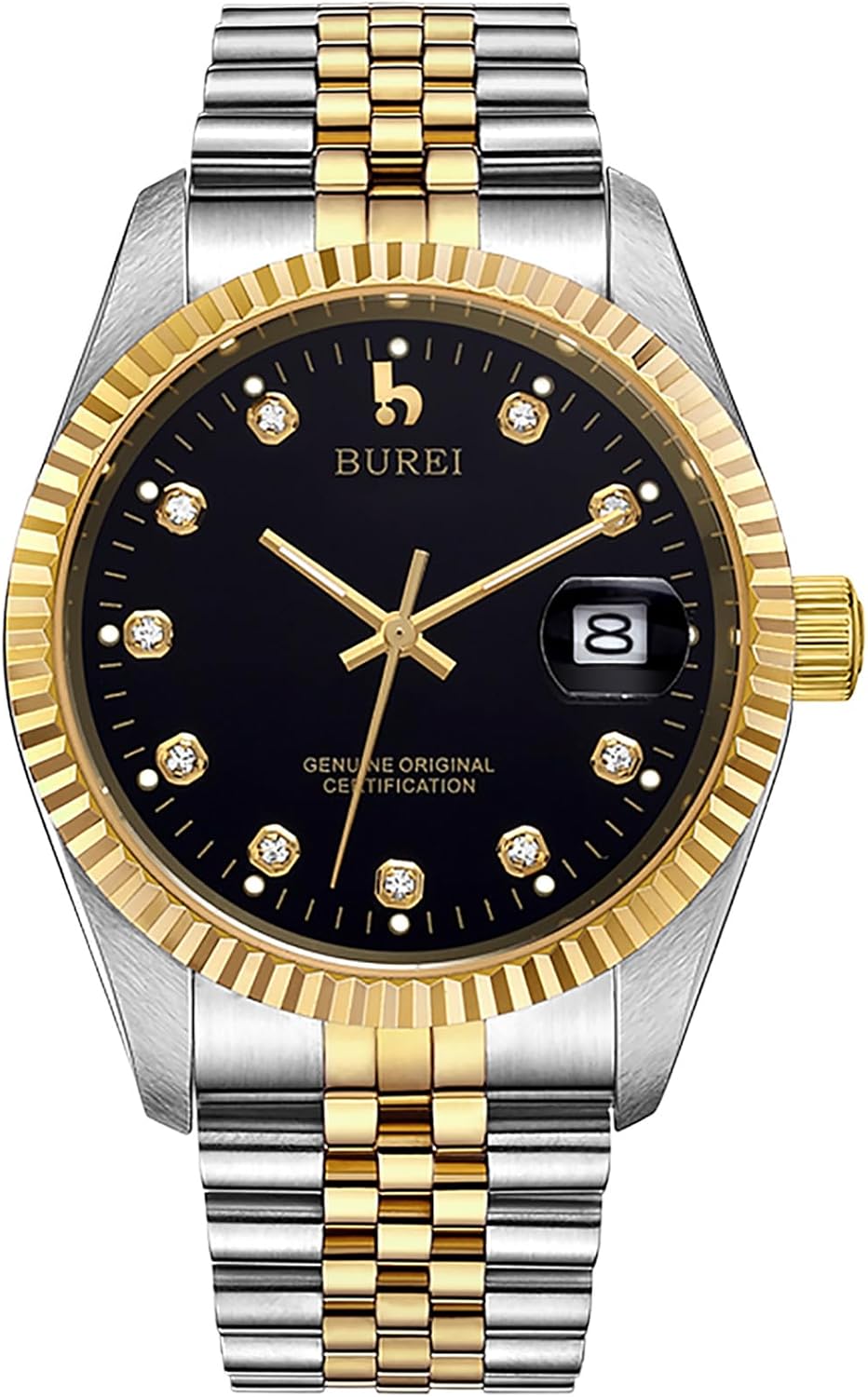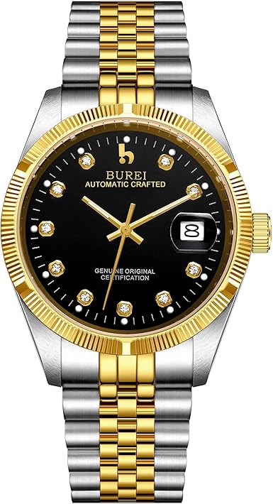 Amazon com: BUREI Mens Luxury Automatic Watch Fashion Black Gold