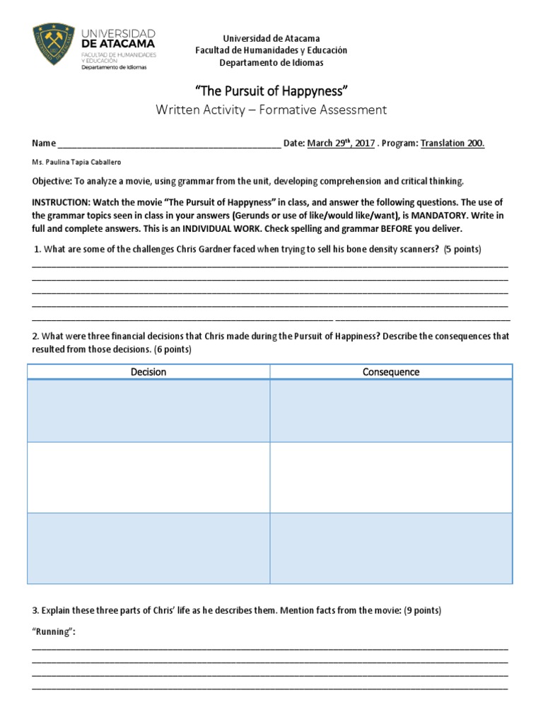 Pursuit Of Happiness Worksheet