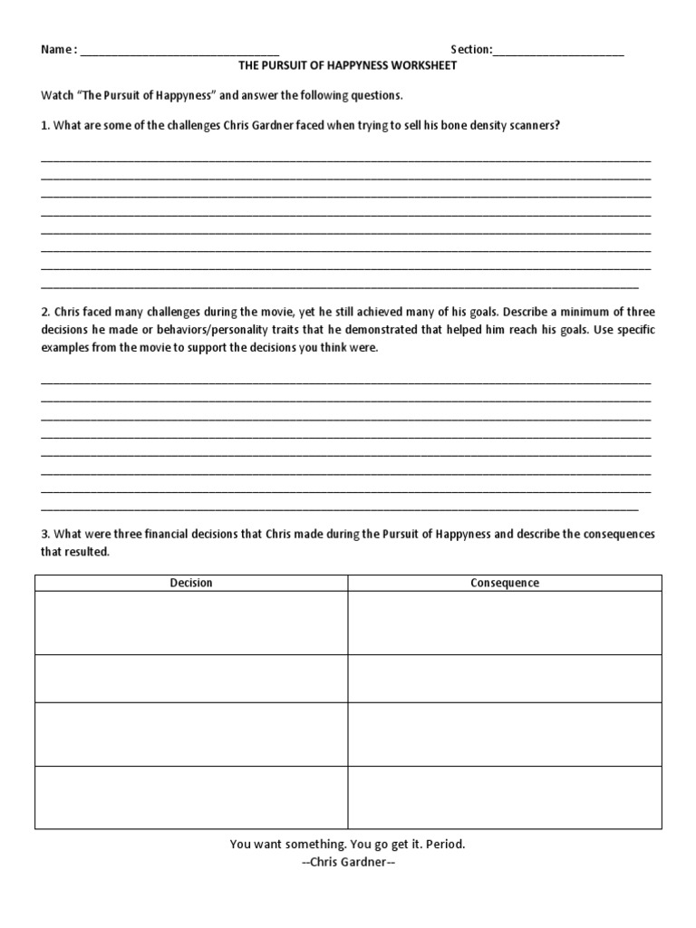 Pursuit Of Happyness Worksheet Pdf Answers Craft Lab