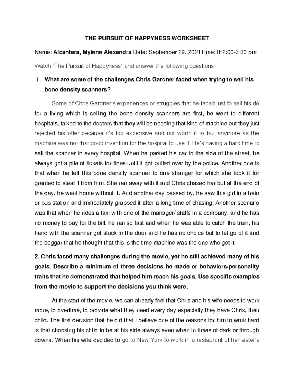 SOLUTION: The pursuit of happyness worksheet Studypool