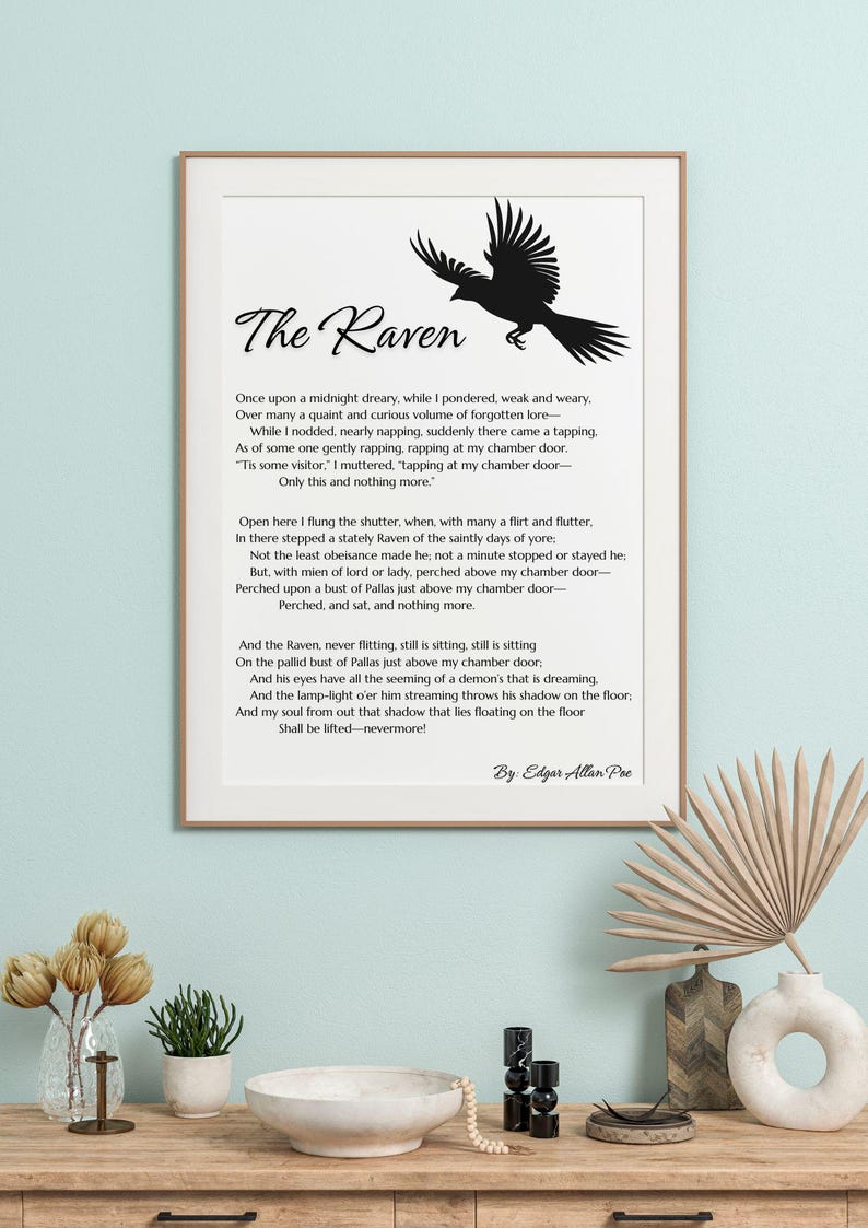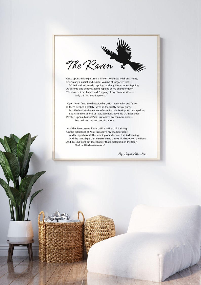 Edgar Allan Poe #39 s the Raven: Gothic Poem Print Wall Art Digital