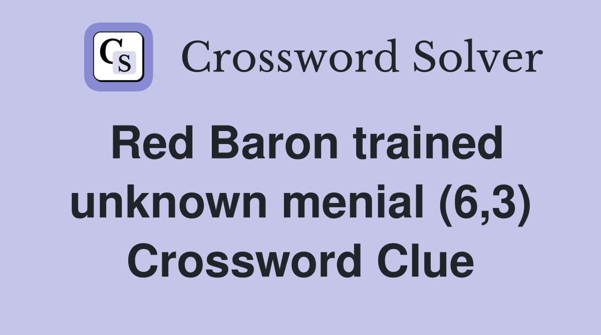 Red Baron trained unknown menial (6 3) Crossword Clue Answers