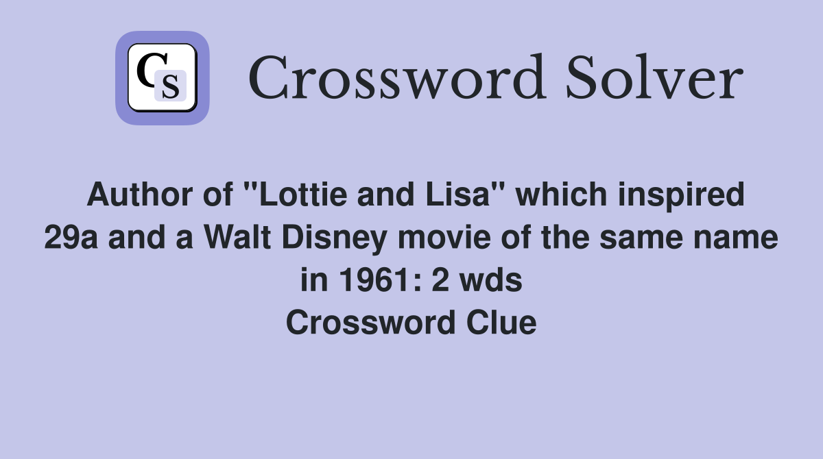 Author of quot Lottie and Lisa quot which inspired 29a and a Walt Disney movie