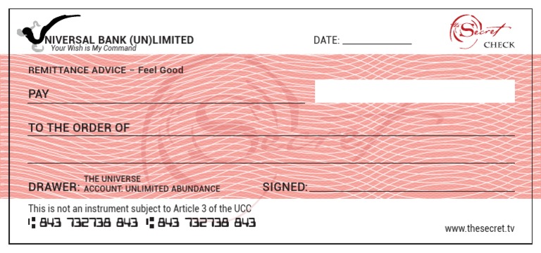 Printable Blank Check Money Manifestation Check Law of Attraction