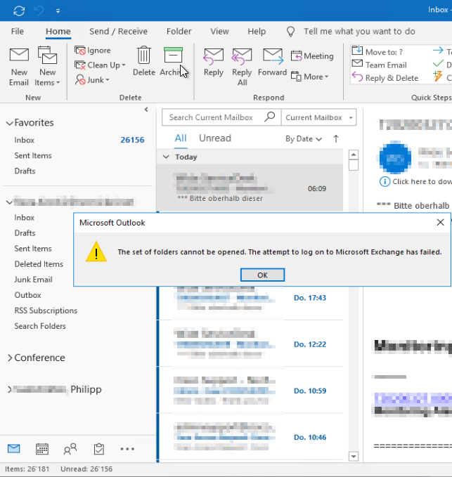 Outlook 365 Cannot expand the folder The set of folders cannot be