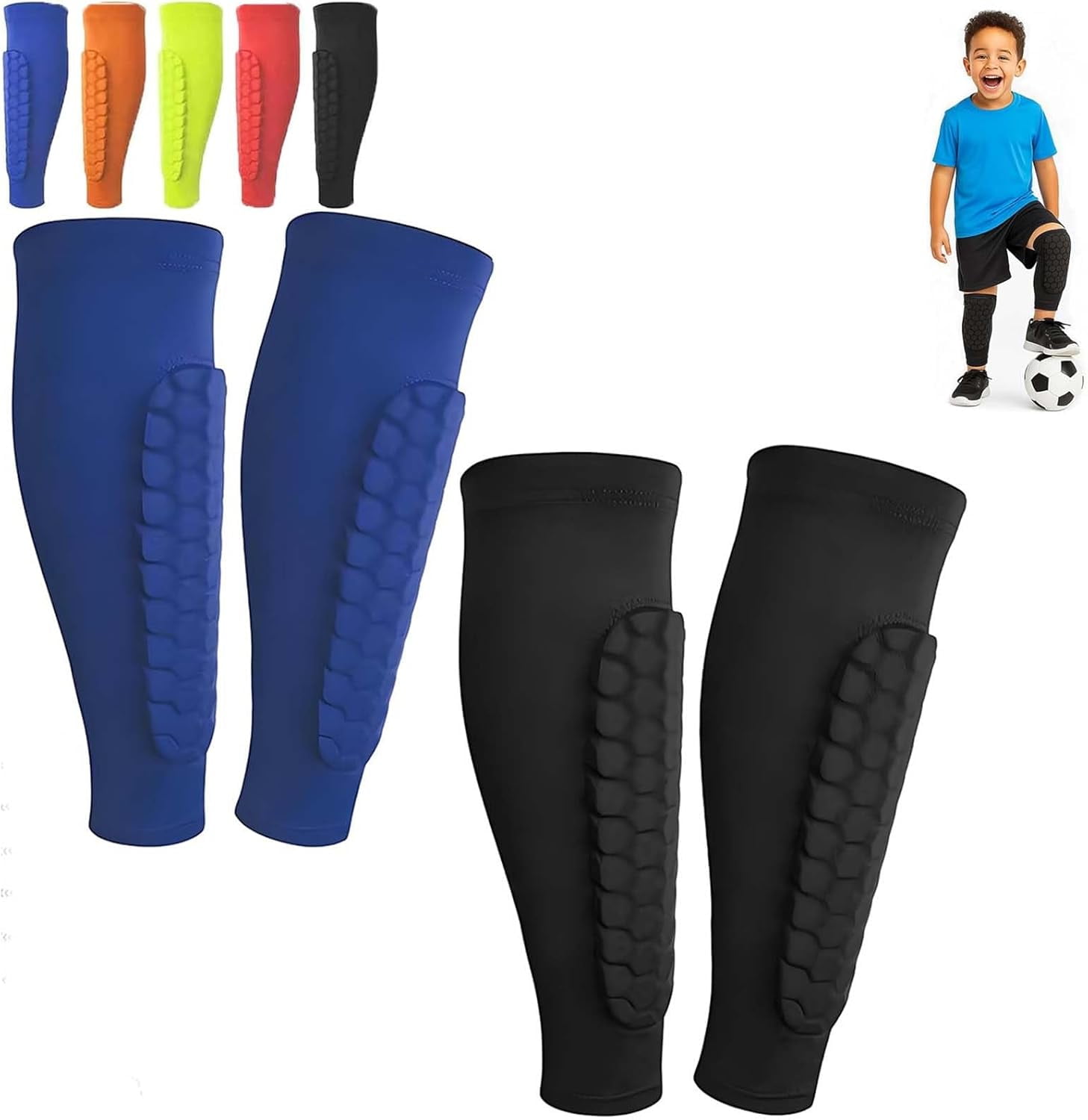 Shin Defender Shin Guards Kids with Honeycomb Pads 2 Pack