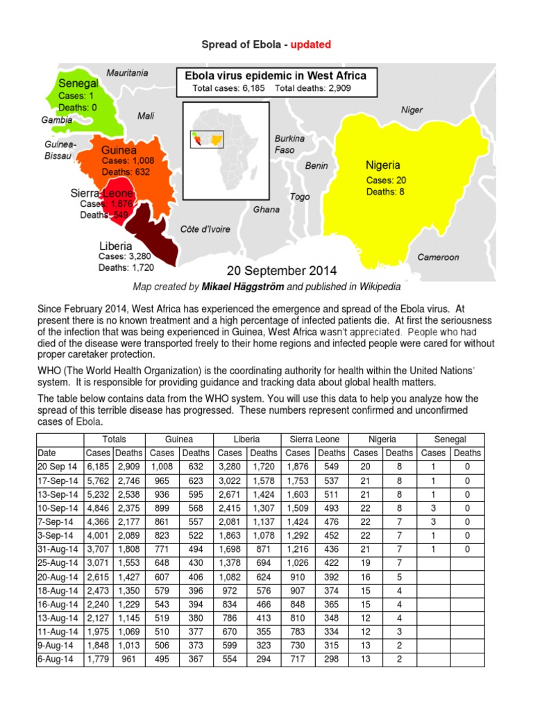 Ebola outbreak analyzing the data worksheet pdf Ebola outbreak
