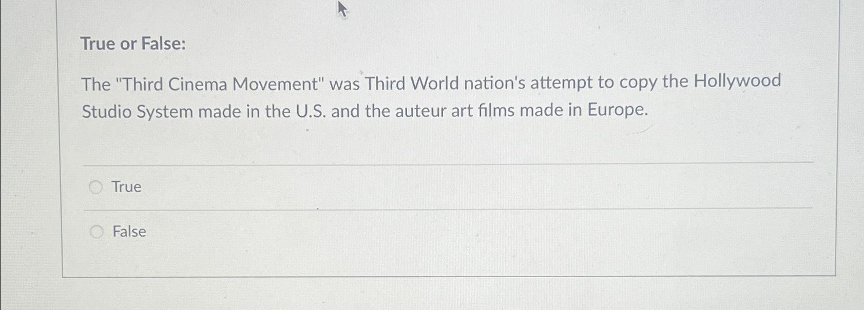 Solved True or False:The quot Third Cinema Movement quot was Third Chegg com