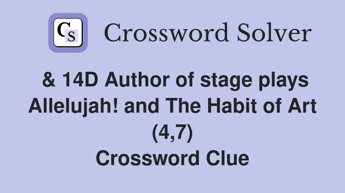 14D Author of stage plays Allelujah and The Habit of Art (4 7