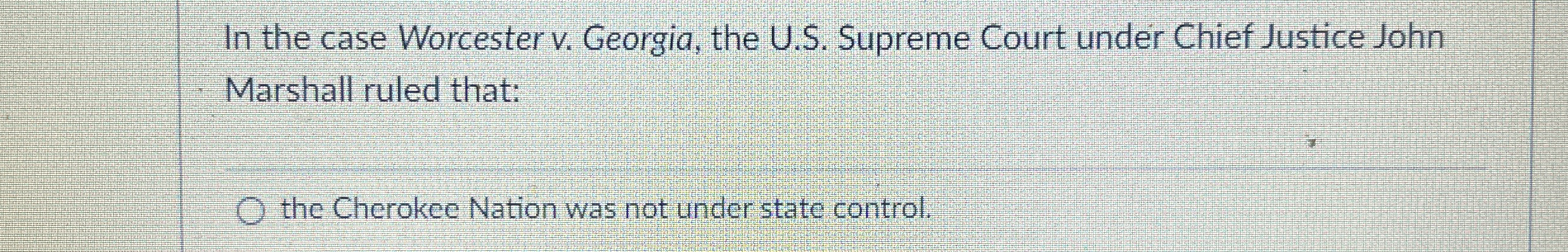 Solved In the case Worcester v Georgia the U S Supreme Chegg com