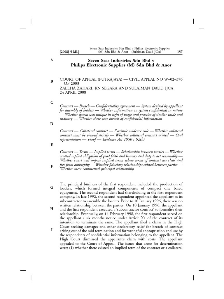 Seven Seas Industries SDN BHD V Philips Electronic Supplies (M) SDN BHD
