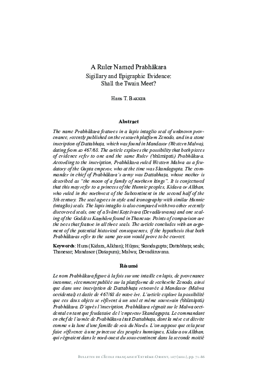 (PDF) A Ruler Named Prabhākara Sigillary and Epigraphic Evidence