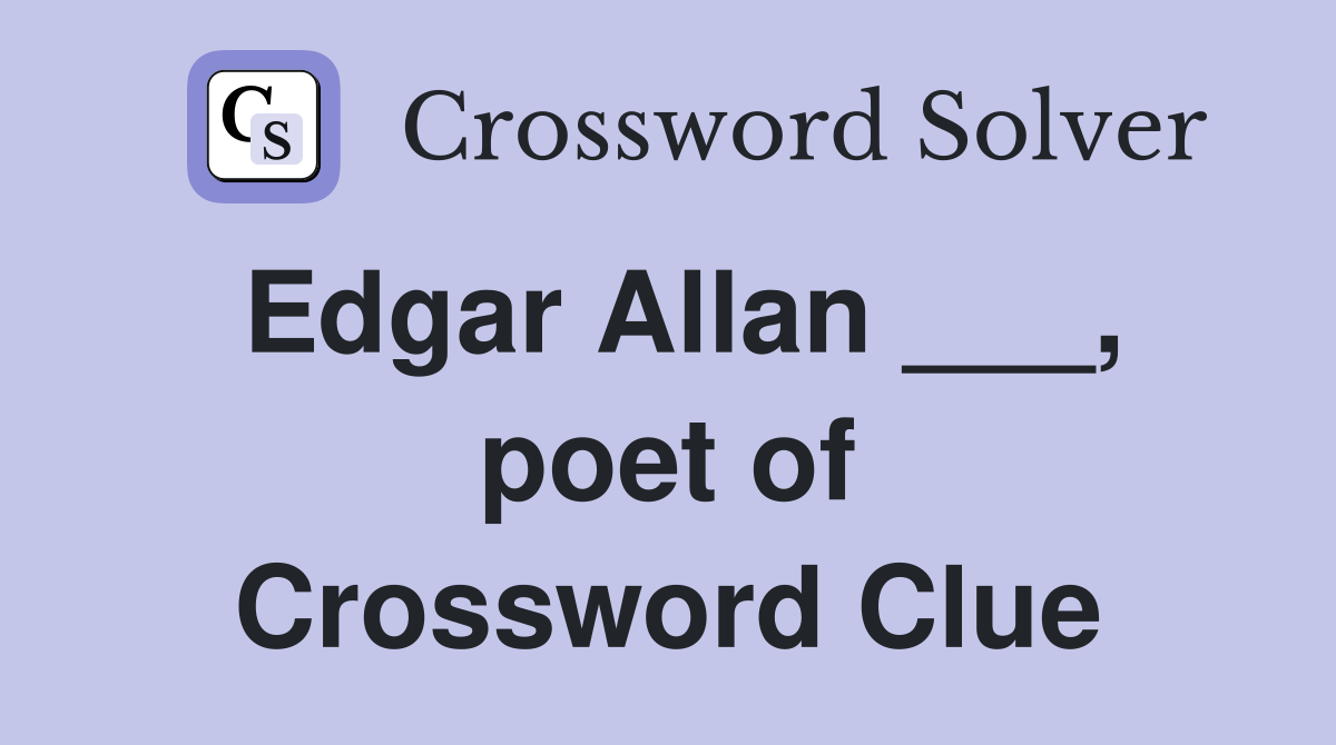Edgar Allan poet of The Raven Crossword Clue Answers