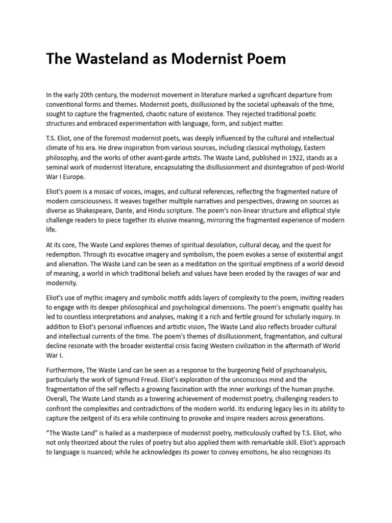 Here are some of the images for The Wasteland Poet Crossword Clue that we found in our website database.