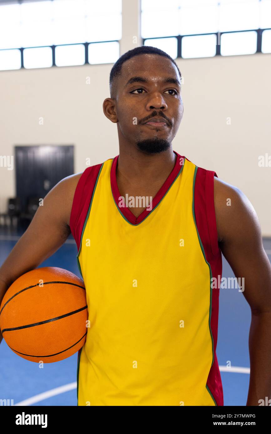 quot Athletic African American Standing On A Basketball Court With A Ball