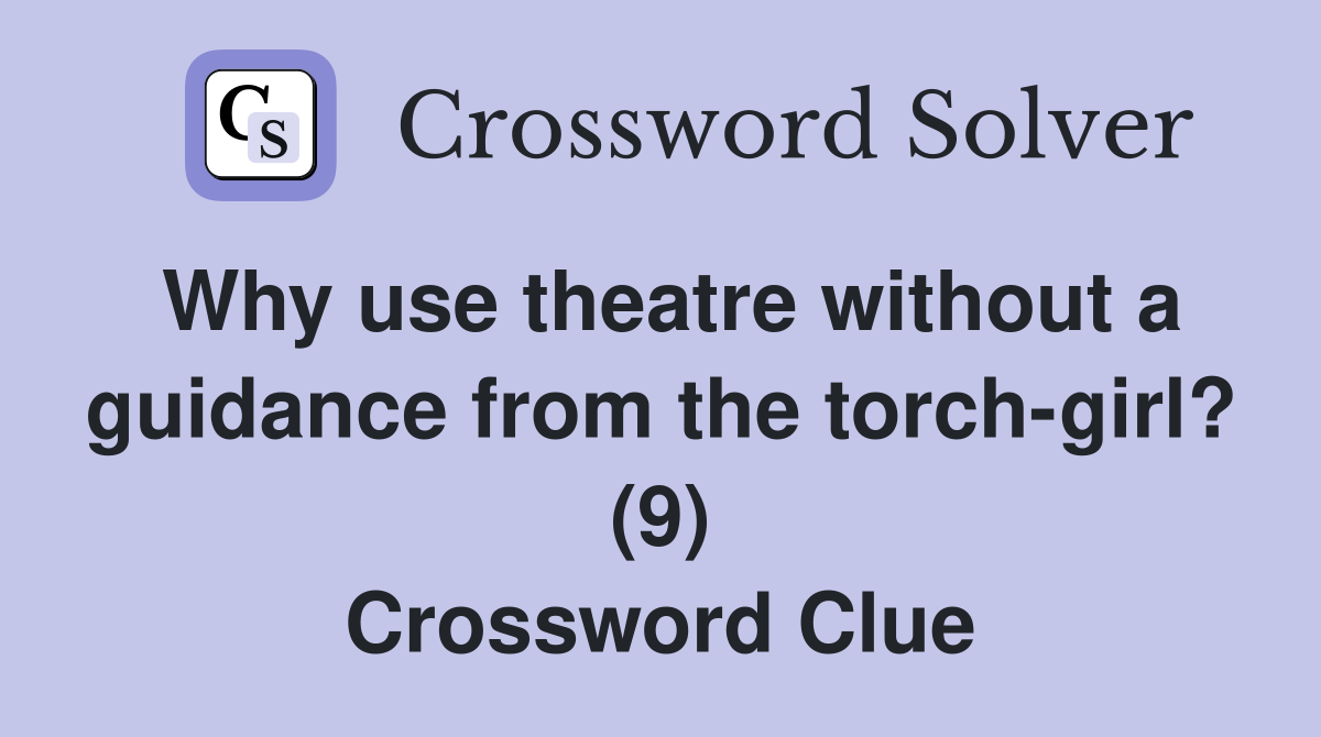 Why use theatre without a guidance from the torch girl? (9) Crossword