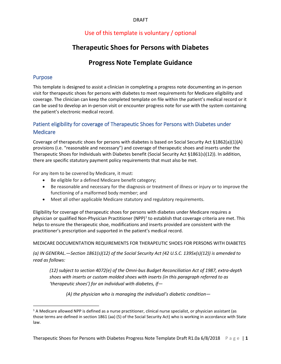 Therapeutic Shoes for Persons With Diabetes Progress Note Template