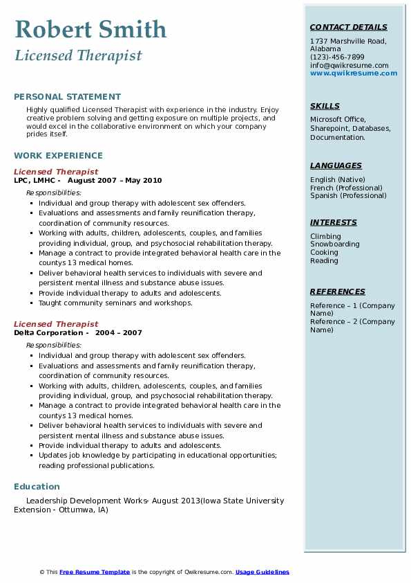 Here are some of the images for Therapist Resume Template that we found in our website database.