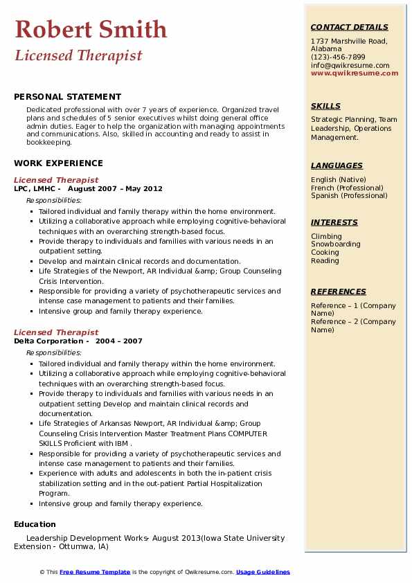 FREE Therapist Resume Templates Download in Word Apple Pages