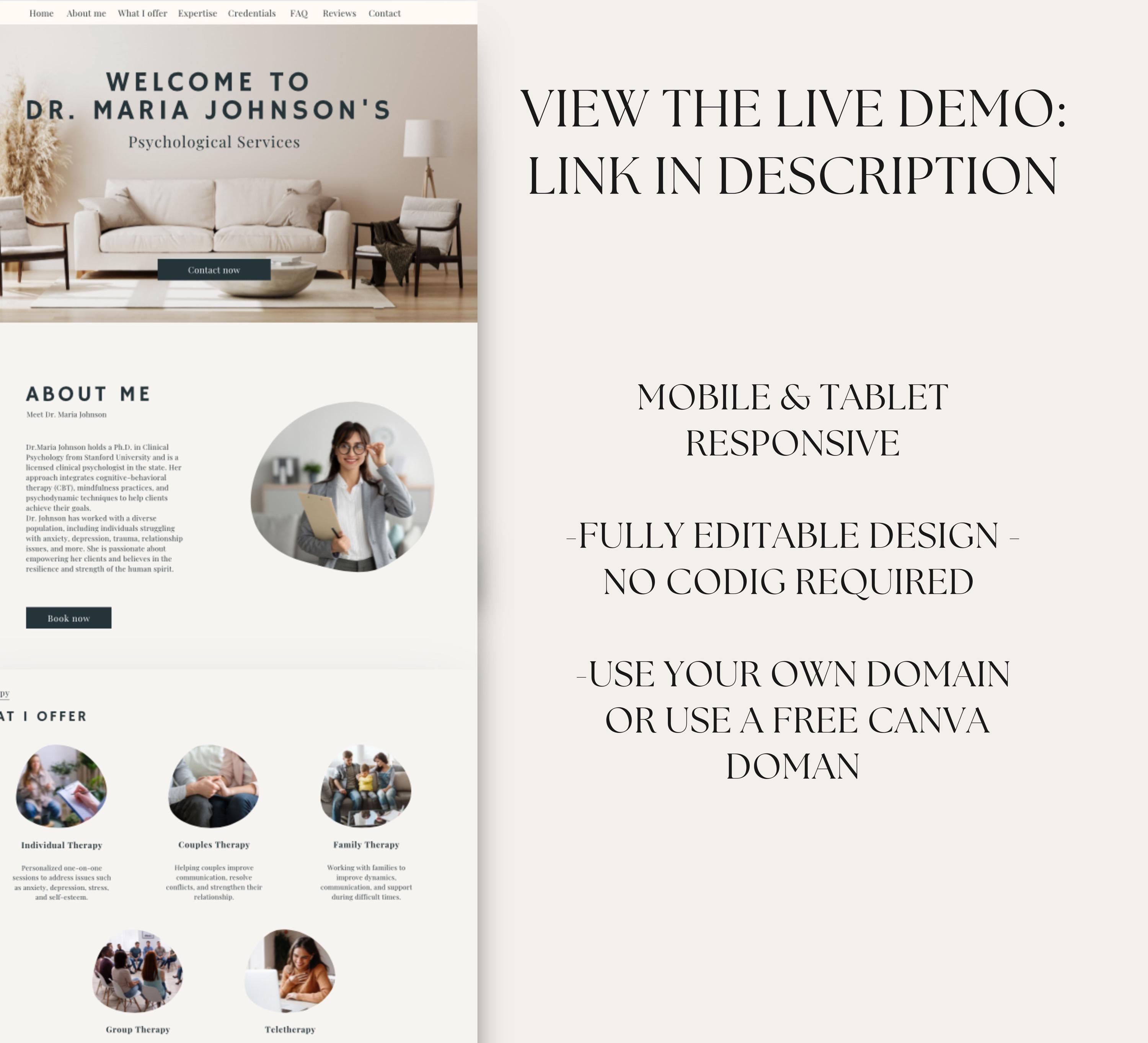 Therapist Canva Landing Page Website Template Kromatic Design Studio