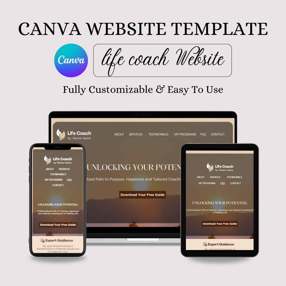 Life Coach Canva Website Template Business Coaching Therapist Website