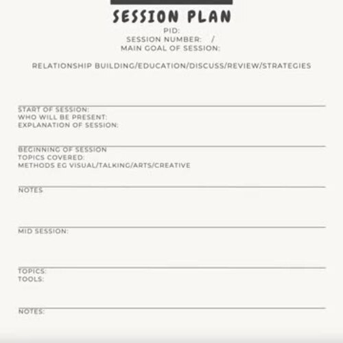Therapy Session PLAN Planner DIGITAL Print Therapy Organisation outline