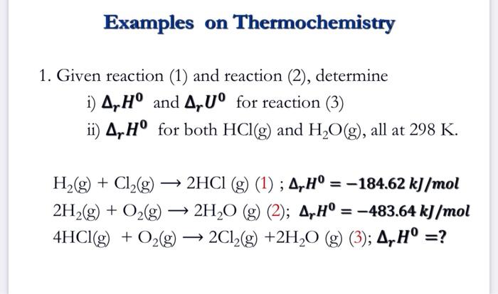 Solved Examples on Thermochemistry 1 Given reaction (1) and Chegg com
