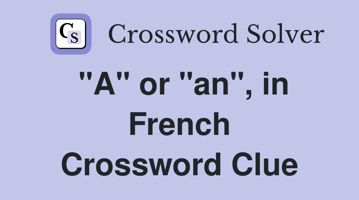 quot A quot or quot an quot in French Crossword Clue Answers Crossword Solver
