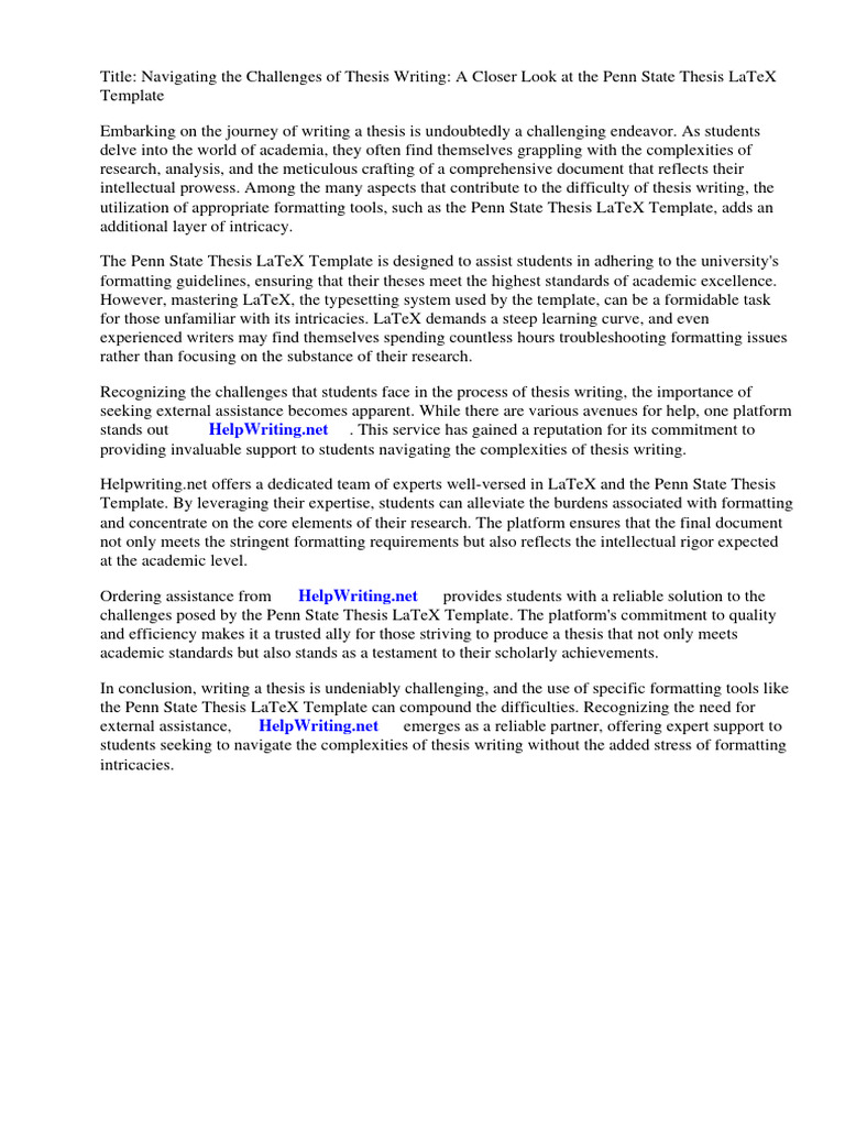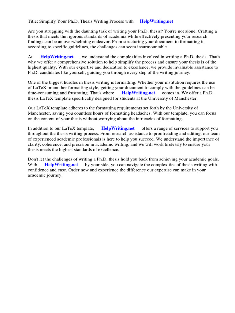 Thesis Latex Template PHD PDF Thesis Doctor Of Philosophy