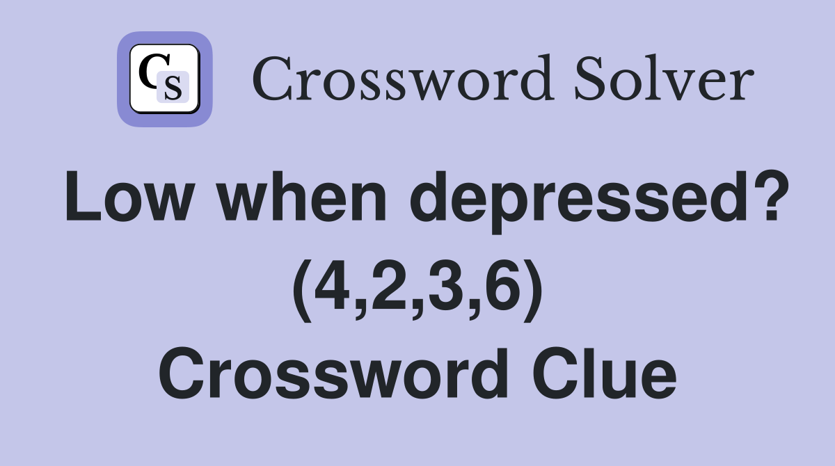 Low when depressed? (4 2 3 6) Crossword Clue Answers Crossword Solver