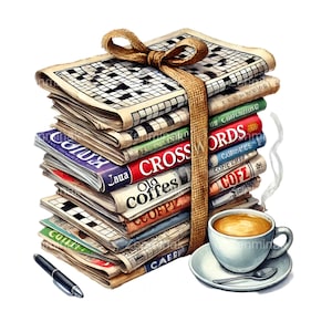 15 Crossword Puzzle Clip Art PNG With Coffee Cup Digital Download for