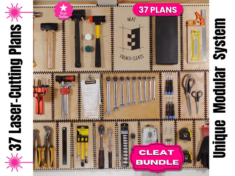 Laser Cut French Cleat Wallboard Plans: 37 Modular Workshop Designs