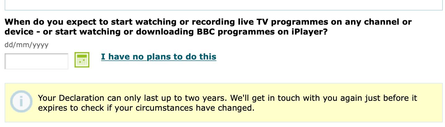 TV Licence: Your declaration that you have no plans to use the BBC only