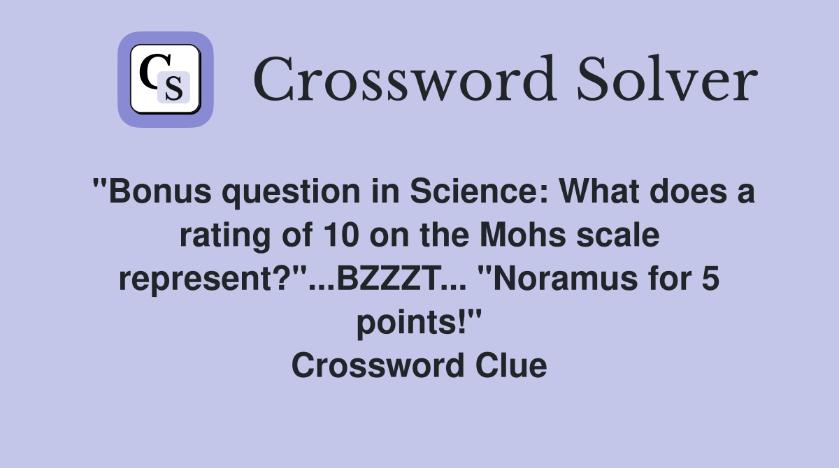 quot Bonus question in Science: What does a rating of 10 on the Mohs scale