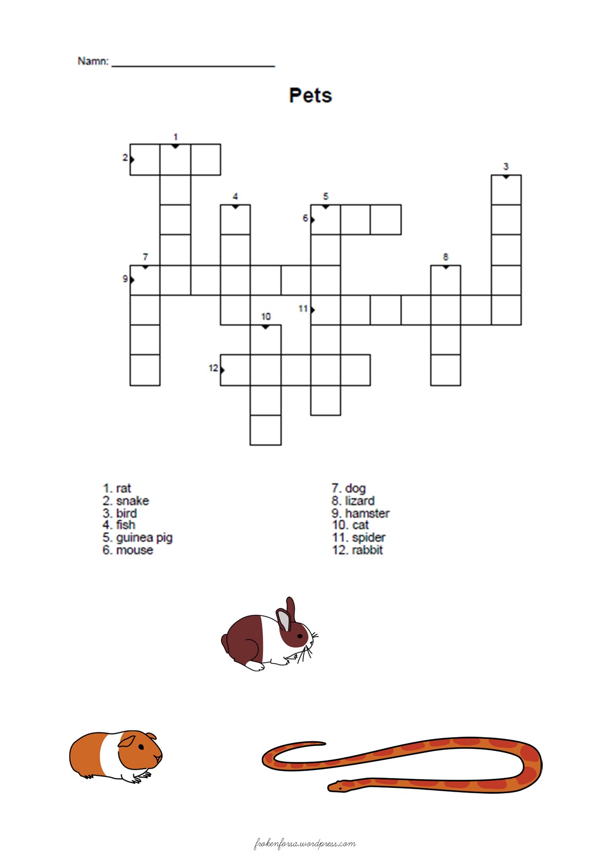 Pets Crossword ∣ F 2 Science