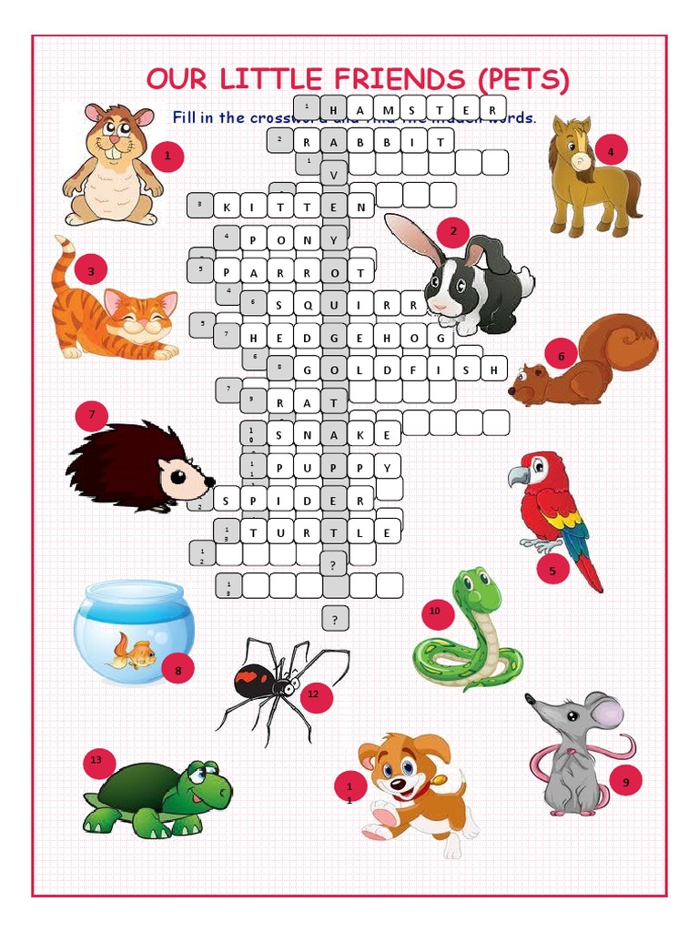 Our Little Friends (Pets) : Fill in The Crossword and Find The Hidden
