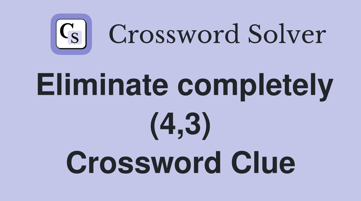 Eliminate completely (4 3) Crossword Clue Answers Crossword Solver