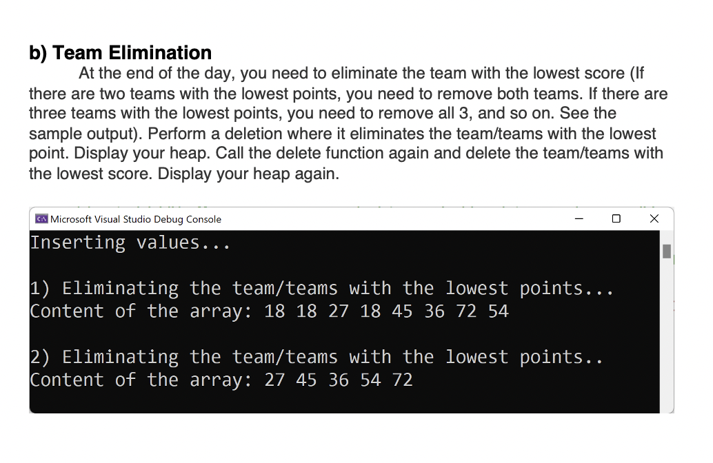 Solved b) Team Elimination At the end of the day you need Chegg com
