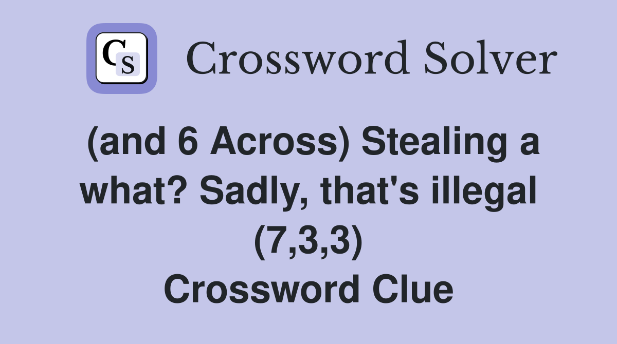 (and 6 Across) Stealing a what? Sadly that s illegal (7 3 3