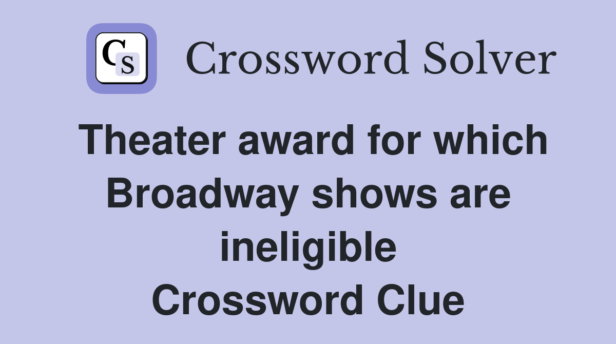 Theater award for which Broadway shows are ineligible Crossword Clue