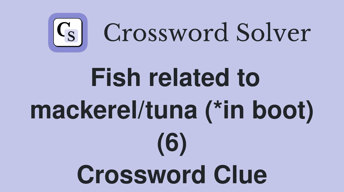Fish related to mackerel/tuna (*in boot) (6) Crossword Clue Answers