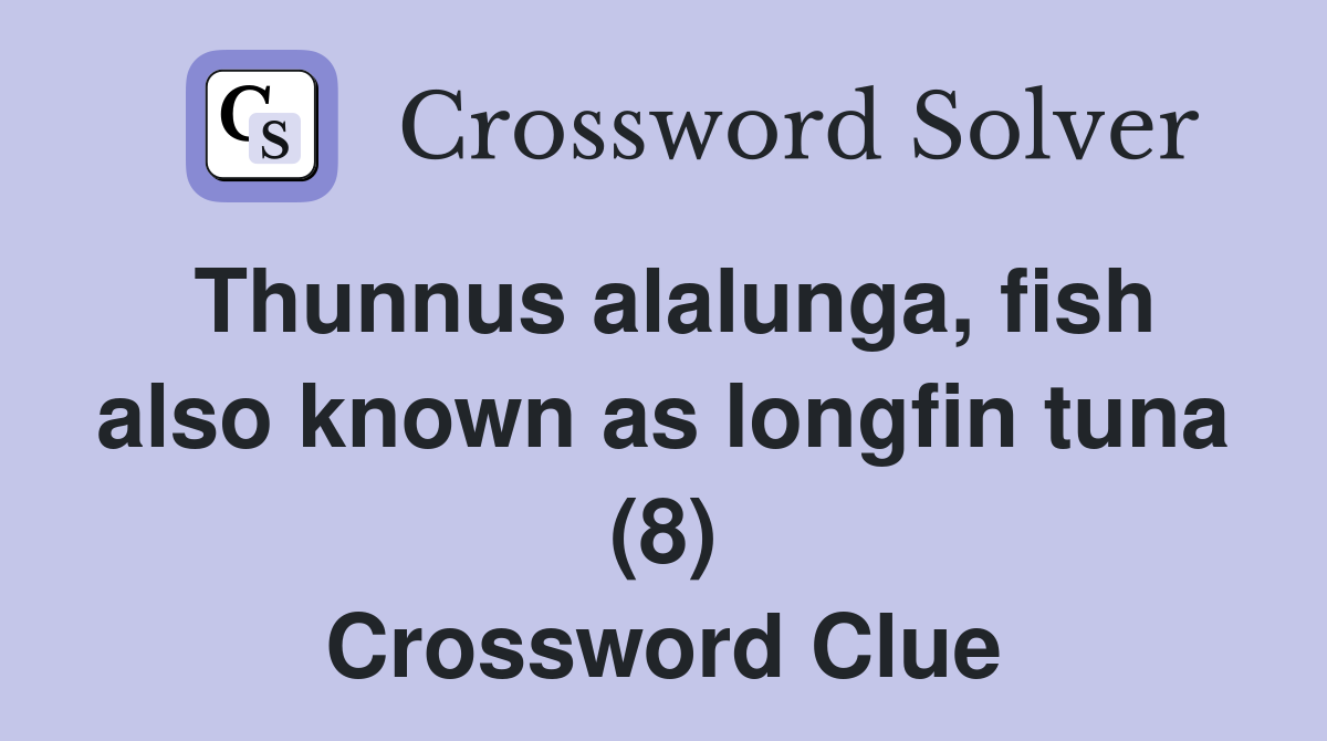 Thunnus alalunga fish also known as longfin tuna (8) Crossword Clue