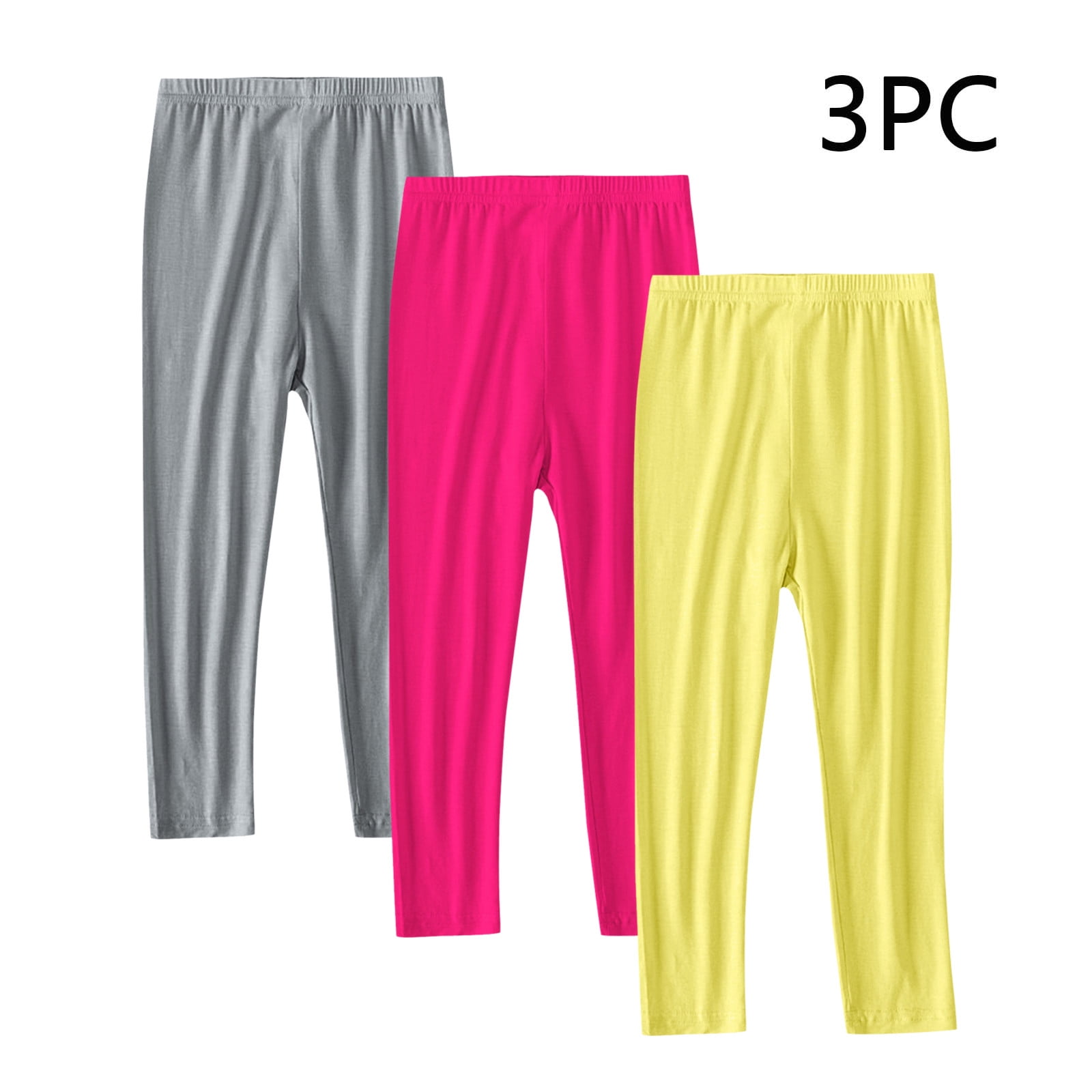 3 Pack Girls Leggings Thick Cotton Leggings for Kids Full Length Pants