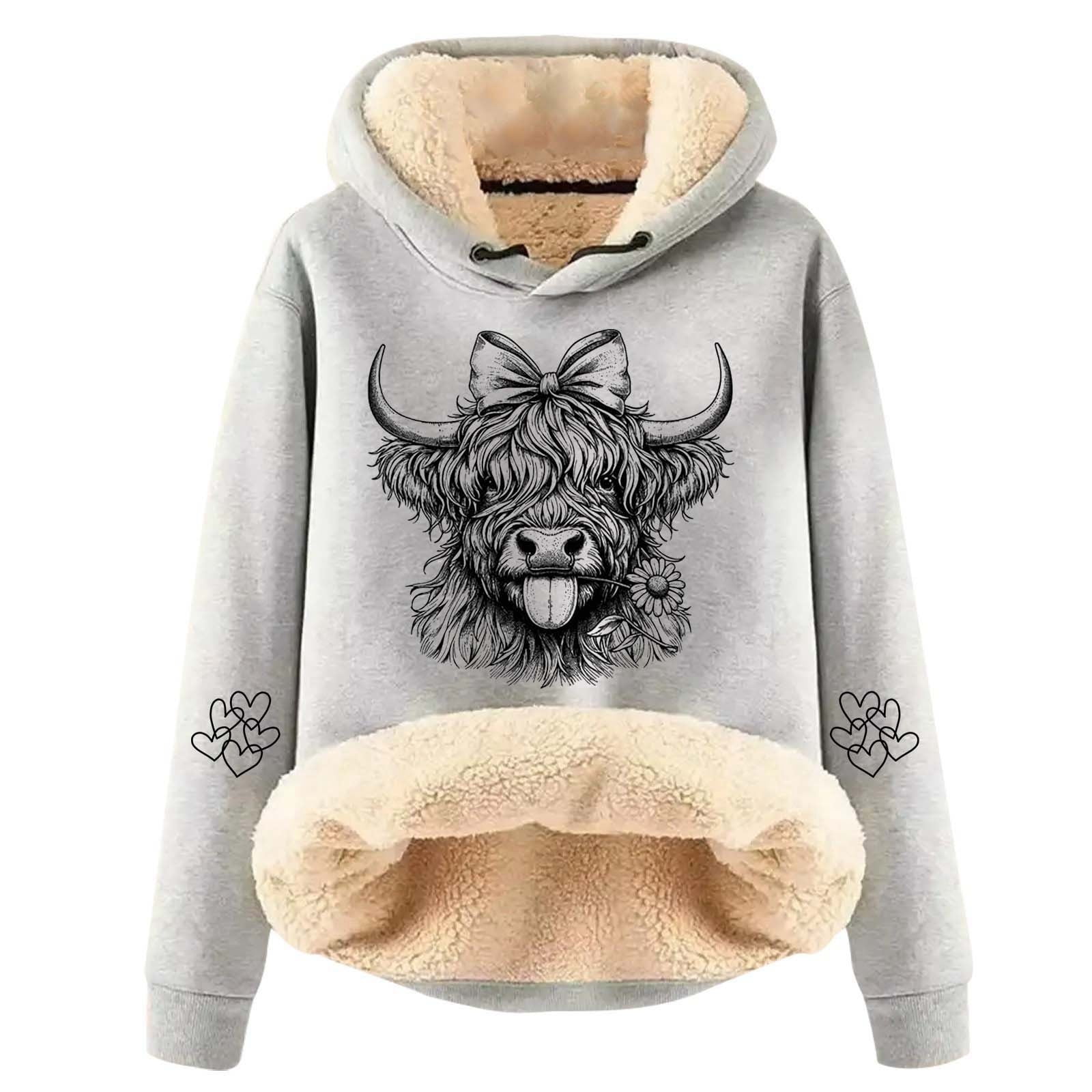 Fshinging Women Hoodies Sweatshirts Thick Woolen Warm Solid Color