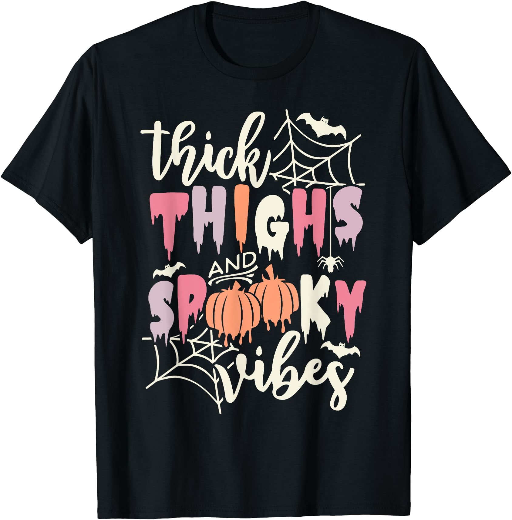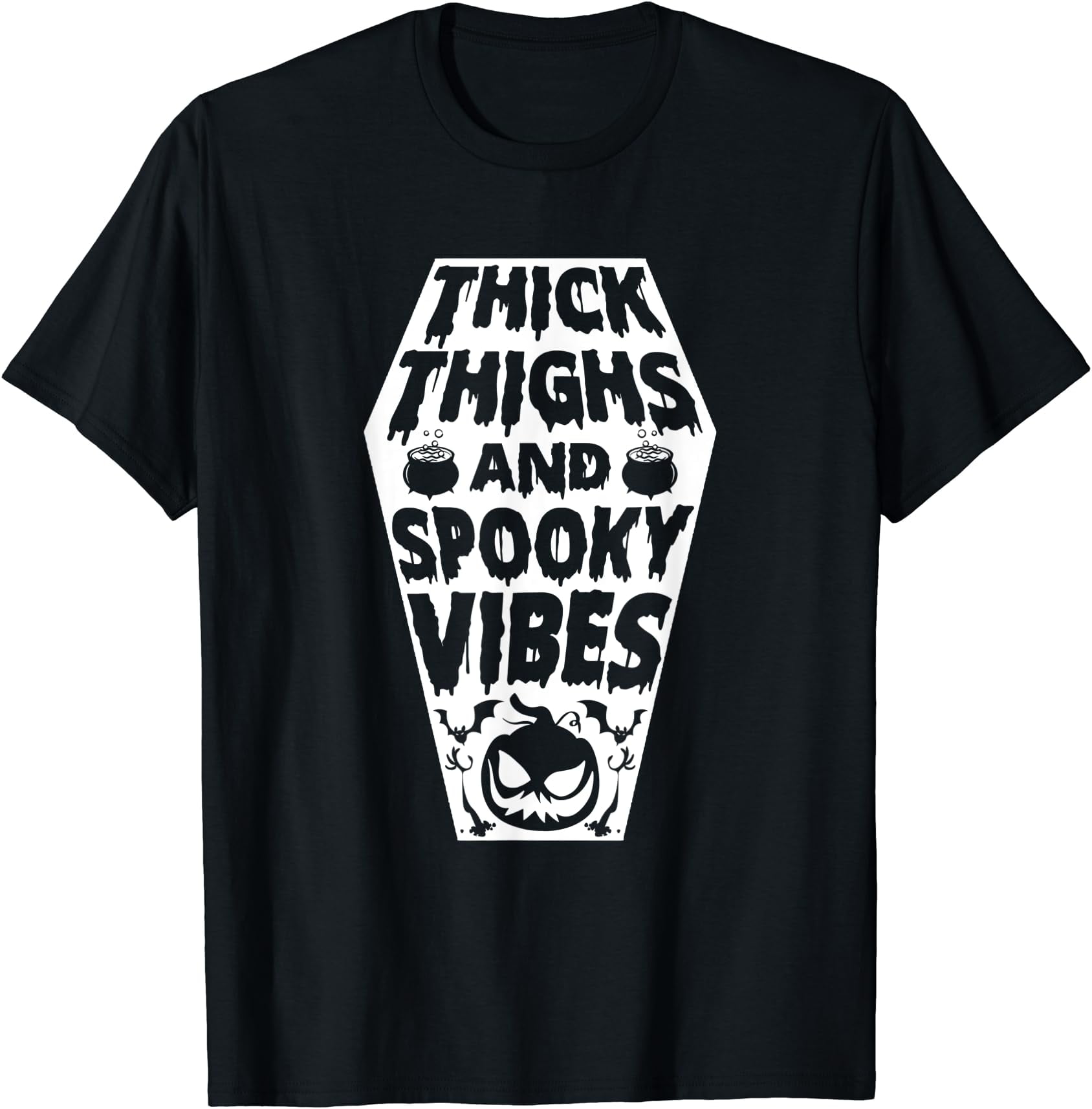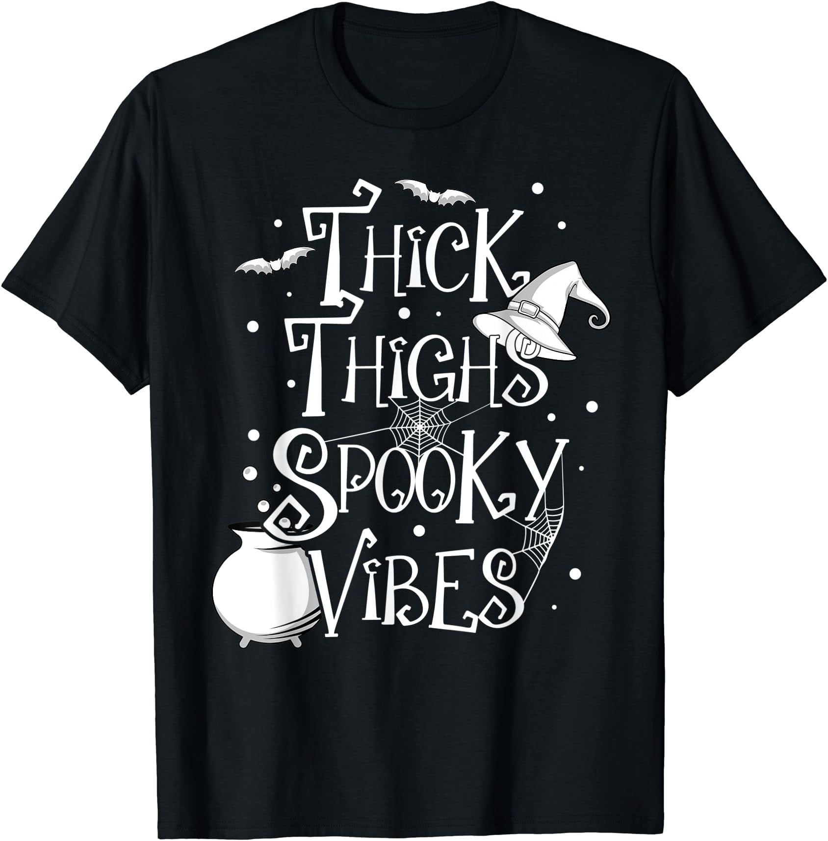 Hot Trending Tee With Thick Thighs Spooky Vibes Party Gym Workout Witch